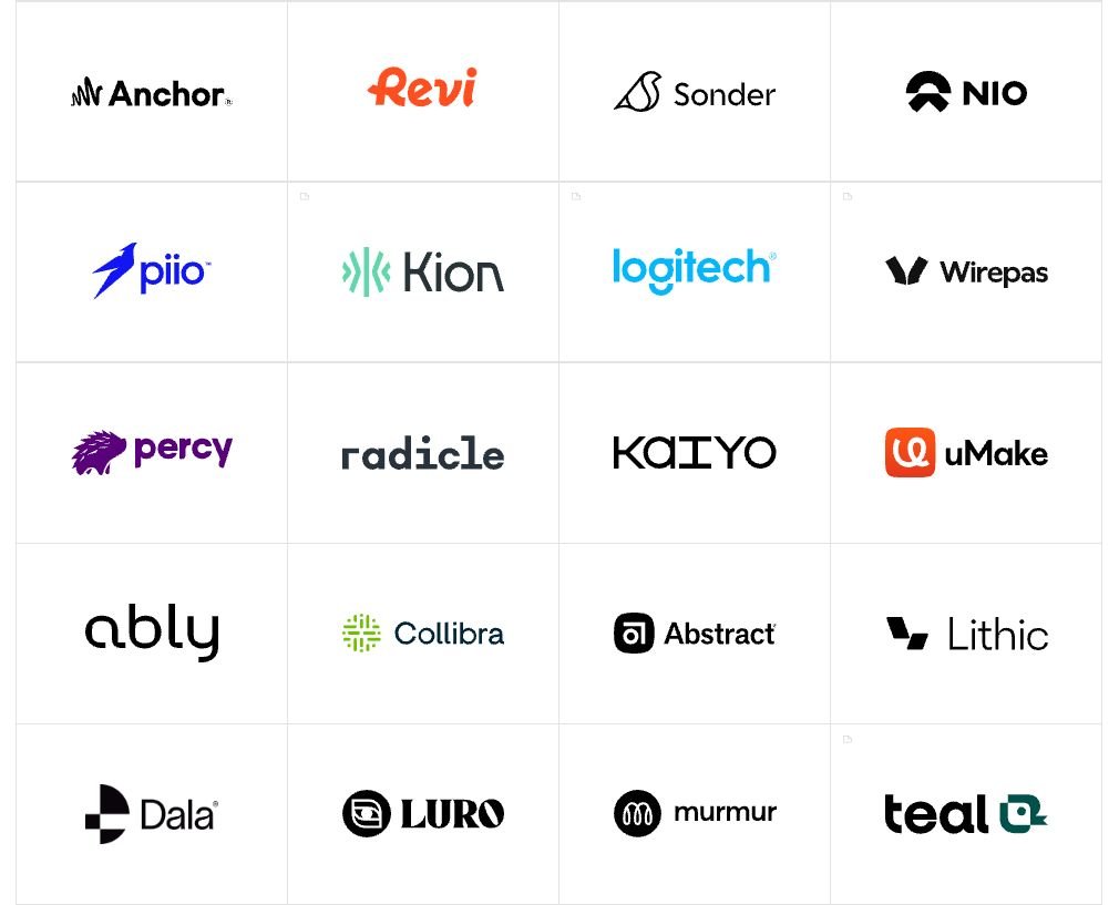 Anchor • Revi • Sonder • NIO • Piio • Kion • Logitech • Wirepas • Percy • Radicle • Kaiyo • uMake • Ably • Collibra • Abstract • Lithic • Dala • Luro • Murmur • Teal